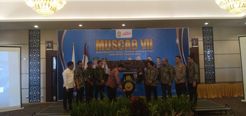 MUSCAB VII HIPMI Cianjur dihadiri, Sekda Kabupaten Cianjur, Ahmad Rifai, Kapolres Cianjur, AKBP Rohman Yonki Dilatha,S.I.K., M.Si.,M.H., Bendahara Umum HIPMI Jabar, M. Firaldi Akbar, Ketua Kadin Cianjur, Paeruzillah, Iwapi Cianjur, Evi Damayanti, unsur Forkopimda Cianjur, jajaran Pengurus HIPMI, serta tamu undangan dari berbagai sektor pelaku usaha.