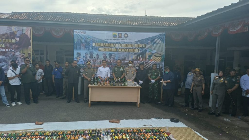 CIANJURPOST.COM – Ribuan botol minuman beralkohol dan ratusan ribu batang rokok ilegal dimusnahkan Pemerintah Kabupaten Cianjur dalam kegiatan terpadu yang digelar menjelang Natal dan Tahun Baru (Nataru).